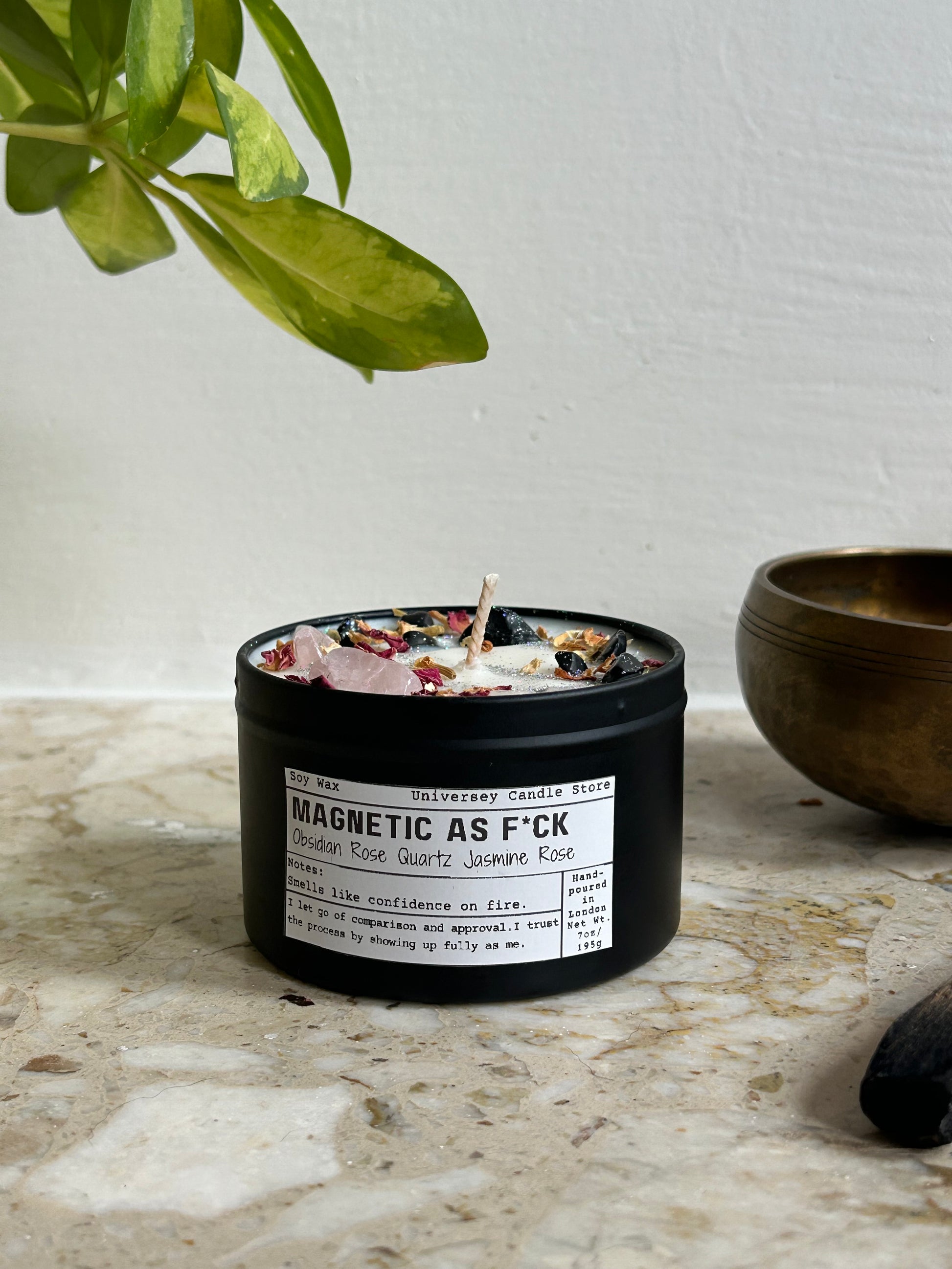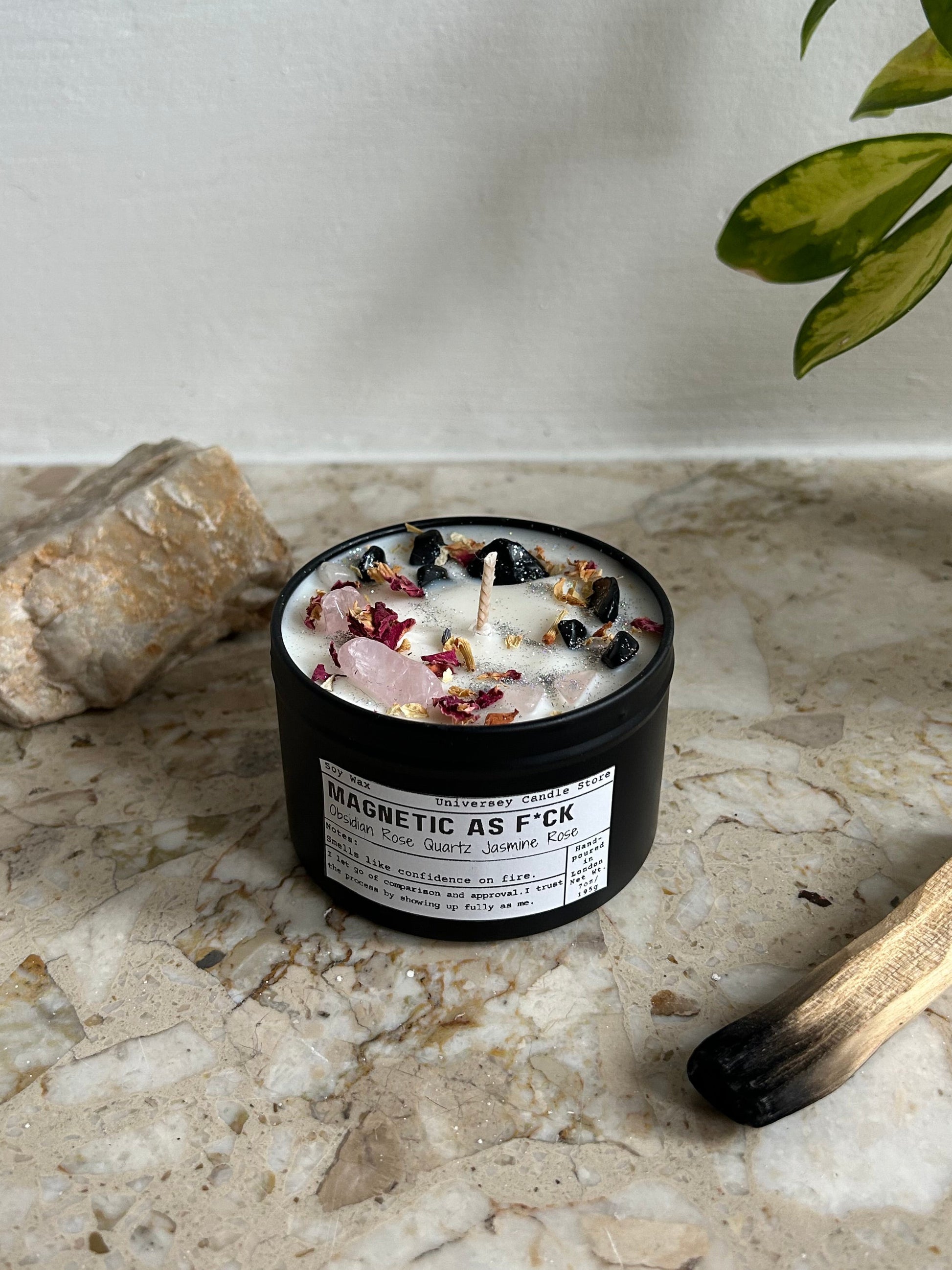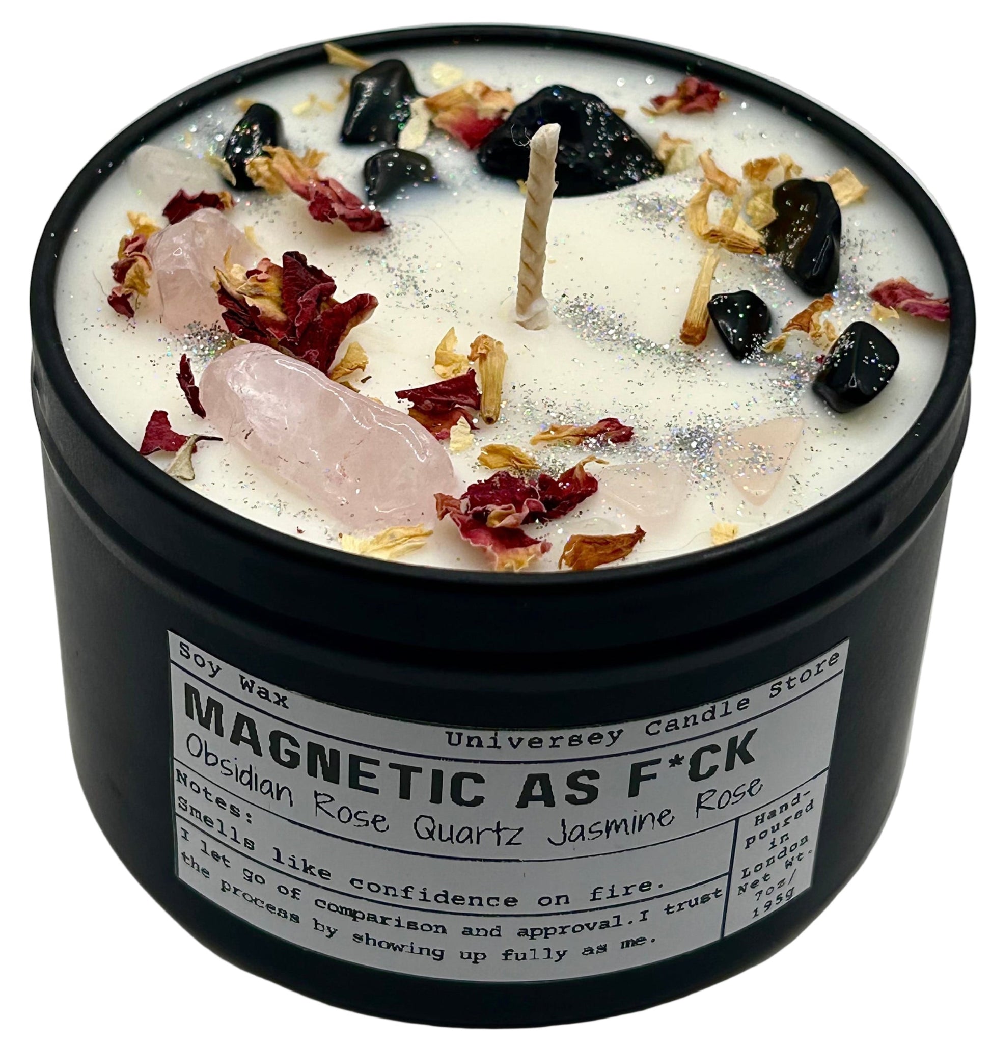 The MAGNETIC AS F*CK Candle is for the bold, the detached, the energetically unstoppable. It’s your ritual tool to break free from attachment, raise your frequency, and step fully into your self-sourced power. This isn’t about faking confidence—it’s about feeling it in your bones. Detachment isn’t coldness. It’s self-love that says, “I don’t need anything outside of me to feel whole.”